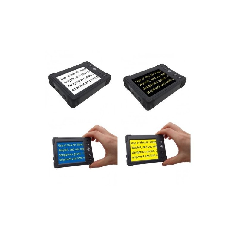 - Sharp full color mode and six other modes for reading: Color, Black on White, White on Black, Yellow on Black, Yellow on Blue, Blue on White, Blue on Yellow.