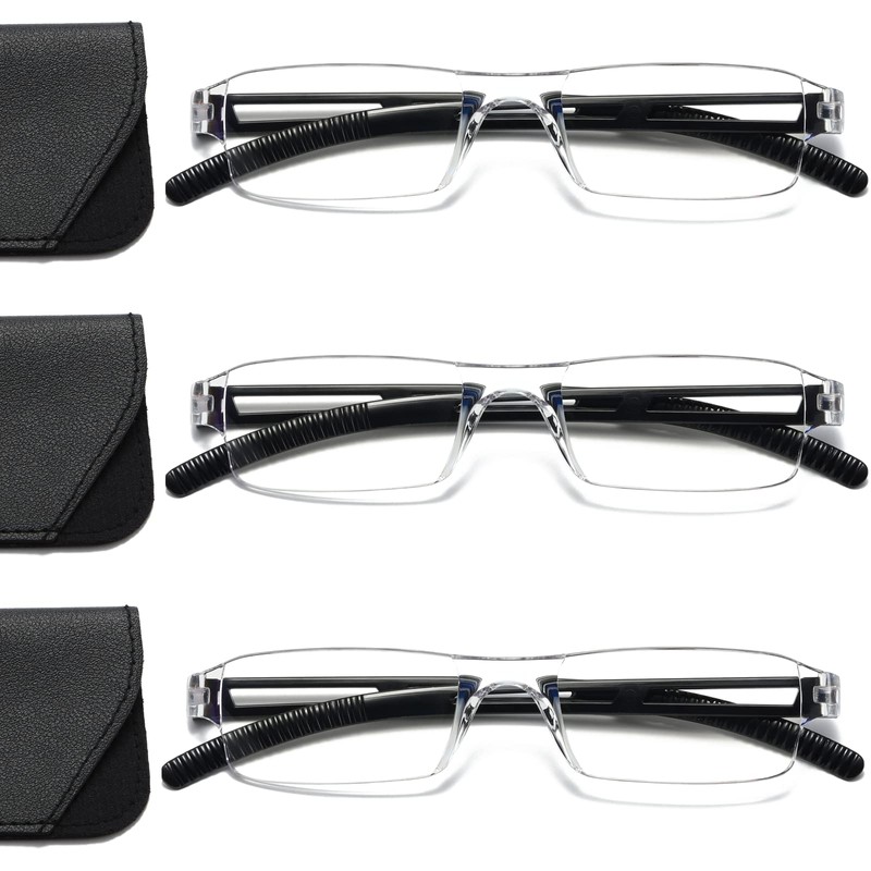 Viseng 3 pairs of reading glasses, blue light blocking glasses, computer reading glasses for men and women, fashionable rectangular one-piece glasses frame+2.5