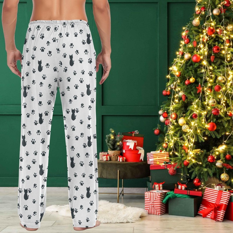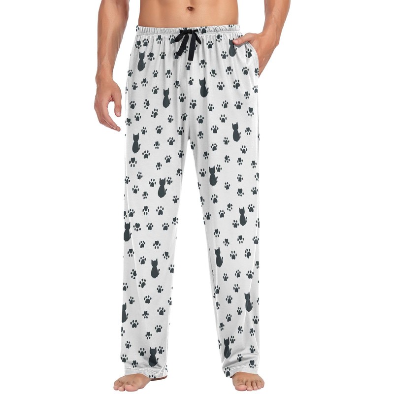visesunny Men's Pajama Bottoms Cotton Lightweight Cat and Paw Print Casual Lounge Pants with Pockets Soft Sleep Pj for Men