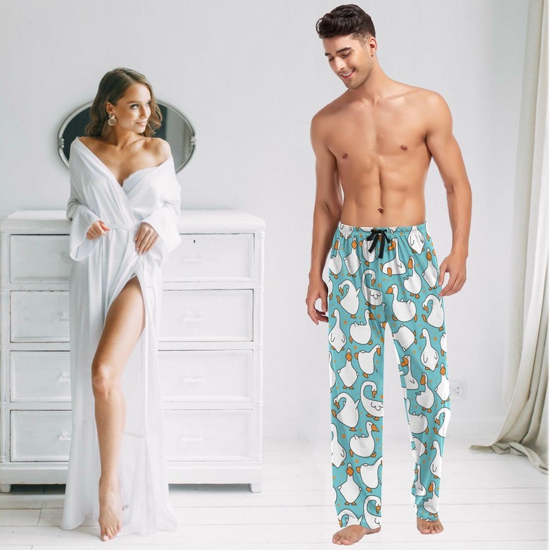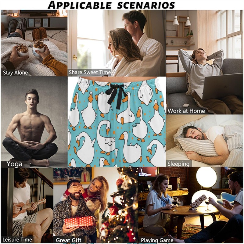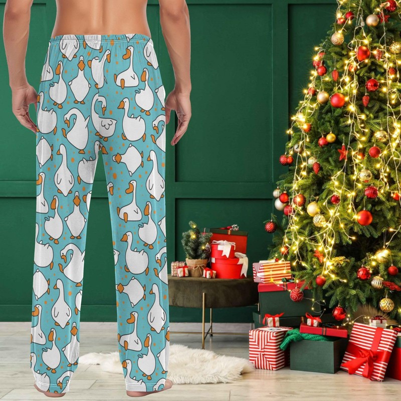 visesunny Men's Pajama Bottoms Cotton Lightweight Funny White Goose Cartoon Casual Lounge Pants with Pockets Soft Sleep Pj for Men