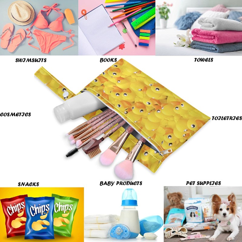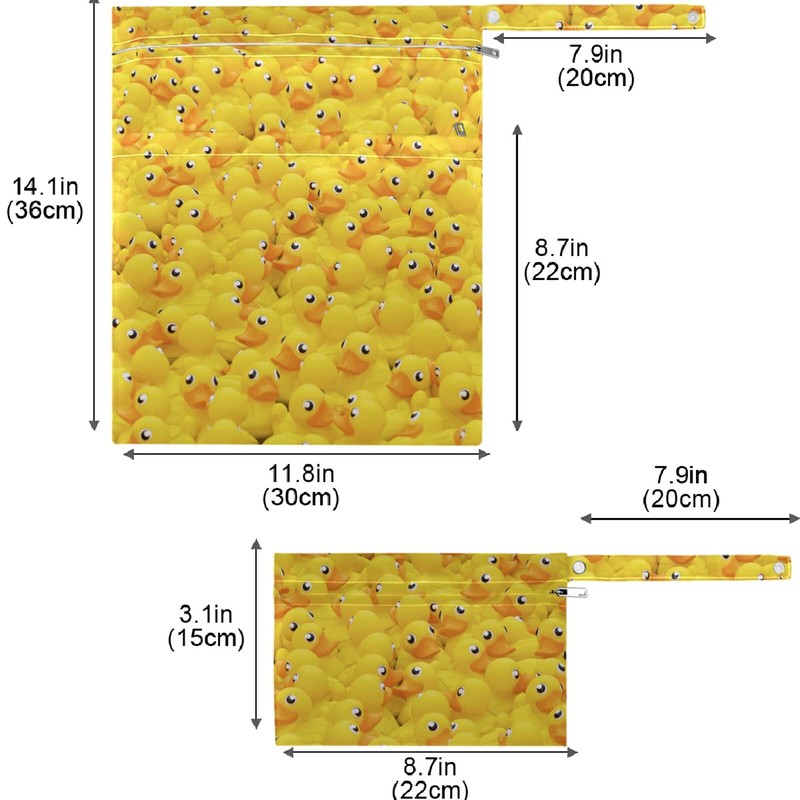 visesunny Yellow Duck Toy 2Pcs Wet Bag with Zippered Pockets Washable Reusable Roomy Diaper Bag for Travel,Beach,Daycare,Stroller,Diapers,Dirty Gym Clothes,Wet Swimsuits,Toiletries