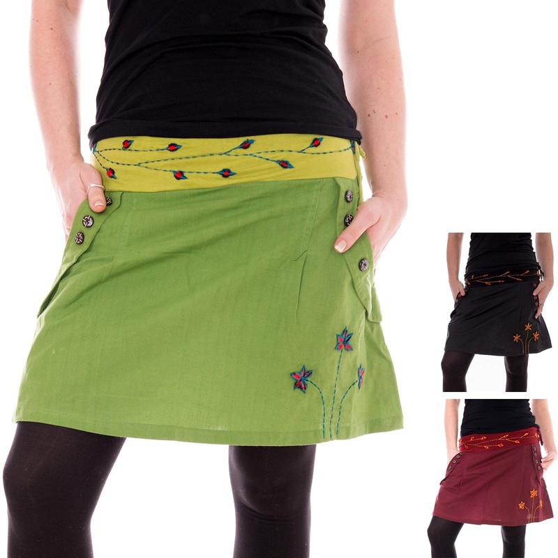 Vishes - Alternative Clothing - Embroidered Cotton Skirt with Flowers, Green