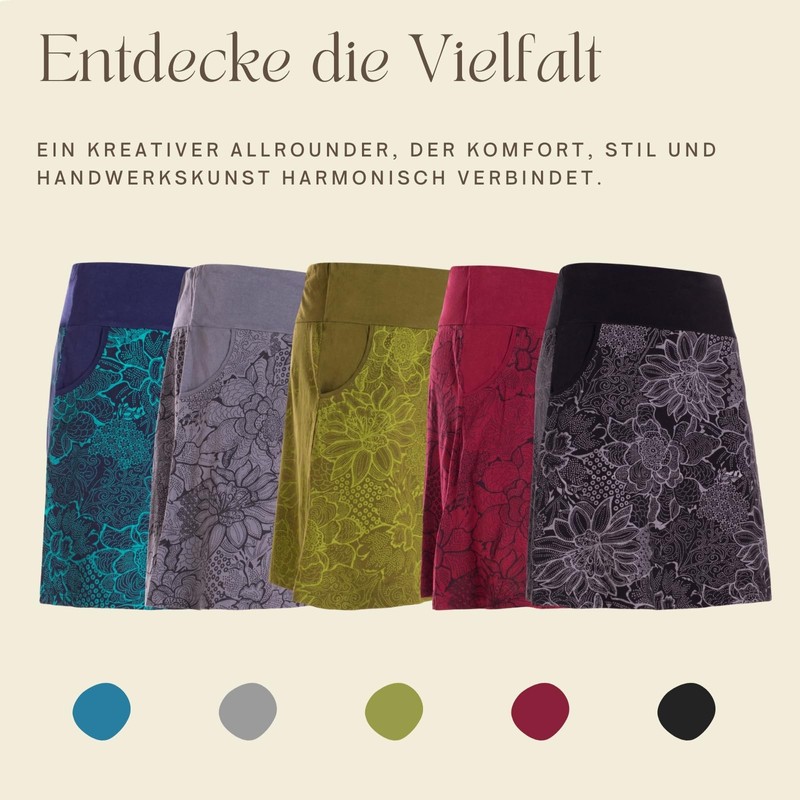Discover the Vishes women's skirt - a must-have for fashion-conscious women who appreciate style and comfort! Handmade from 100% high-quality cotton, this skirt combines traditional craftsmanship with contemporary design and sustainability. With an elegant A-line shape and a total length of 43-46 cm, the mini skirt flatters any figure and ensures a perfect fit.