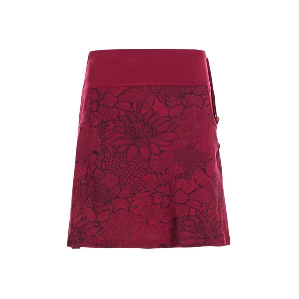 Vishes Short women's skirt with floral lace, size 34-46, handmade from 100% cotton, skirt with pockets, for warm and cold months, sustainable alternative clothing, darkred, 40