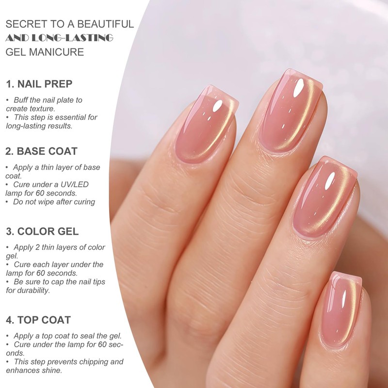 - Long-Lasting & Chip-Resistant – This jelly cat eye gel polish delivers a smooth, bubble-free, and high-gloss mirror finish. With strong coverage and proper application, it stays flawless for 28+ days without peeling.