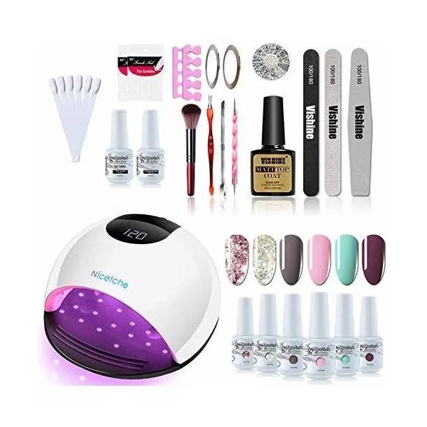 El kit de iniciación Vishine de 72 W para lámpara de uñas de gel contiene todas las herramientas que necesitas para una manicura de esmalte de gel hermosa. El kit de uñas de gel incluye la última lámpara de uñas LED de 72 W que tiene casi cero tiempo de secado.