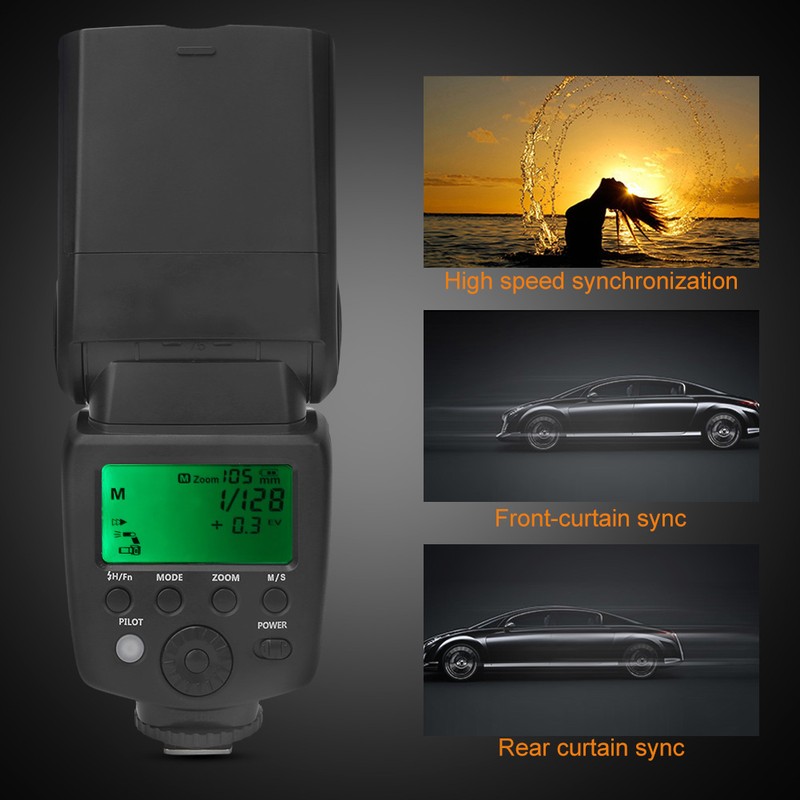 Sync Mode: High-speed sync (up to 1/8000 seconds), front-curtain sync, rear-curtain sync