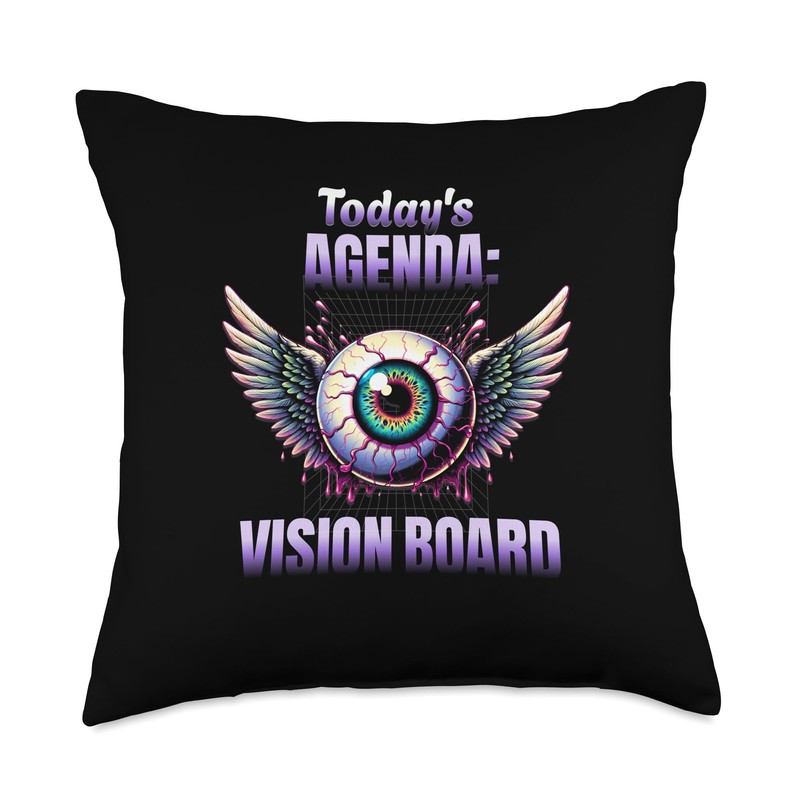 Vision Board Today's Agenda Eyeball with WIngs Throw Pillow