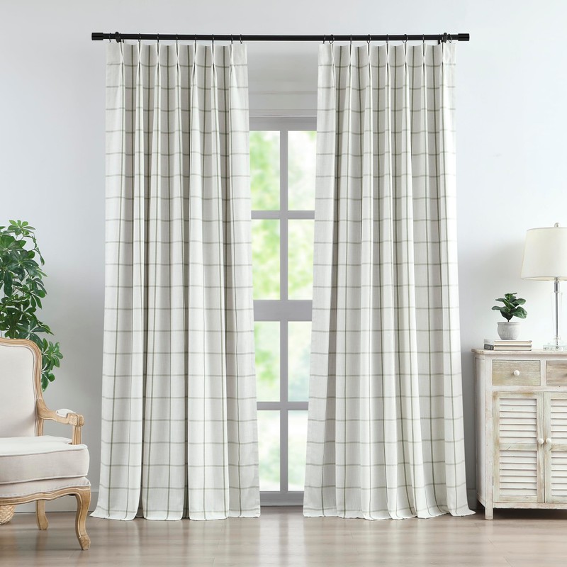 - Classic Checkered Pattern with Pinch Pleats: Featuring a chic plaid grid pattern, these green linen curtains add a sophisticated and contemporary touch to your decor. Each panel has 7 sewn-in pleats. Ideal for living rooms, dining areas, and bedrooms, these curtains enhance the aesthetic appeal while providing a warm and inviting atmosphere that complements various design styles