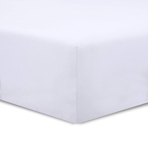 VISION - Set of 2 Fitted Sheets 90 x 200 cm White 100% Cotton 57 Thread Count 4 Elasticated Corners 30 cm