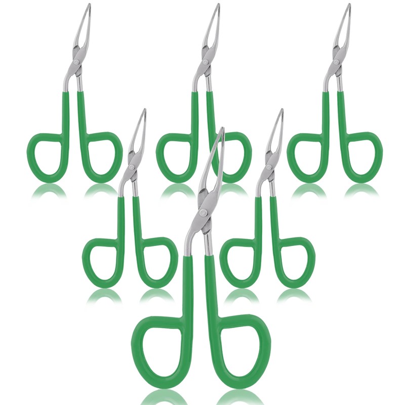 VISION TEK MED 6 Pieces Tweezers Scissor Handle Straight Tip Scissor Shaped Eyebrows Tweezers for Hair Plucker Remover Facial Hair Eyebrows Care (Green)