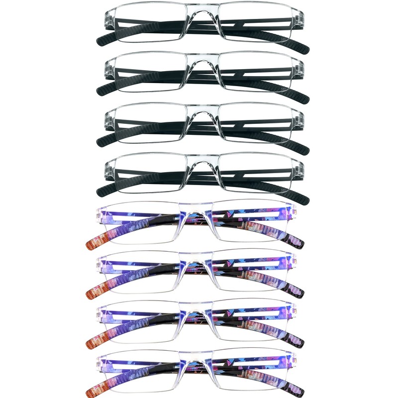 • Package Includes: 8 pack Reading Glasses, great for home, office, or bedside use. Keep a pair at your desk, in your bag, and in your favorite reading spots