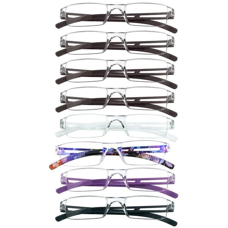 - Package Includes: 8 pack Reading Glasses, great for home, office, or bedside use. Keep a pair at your desk, in your bag, and in your favorite reading spots
