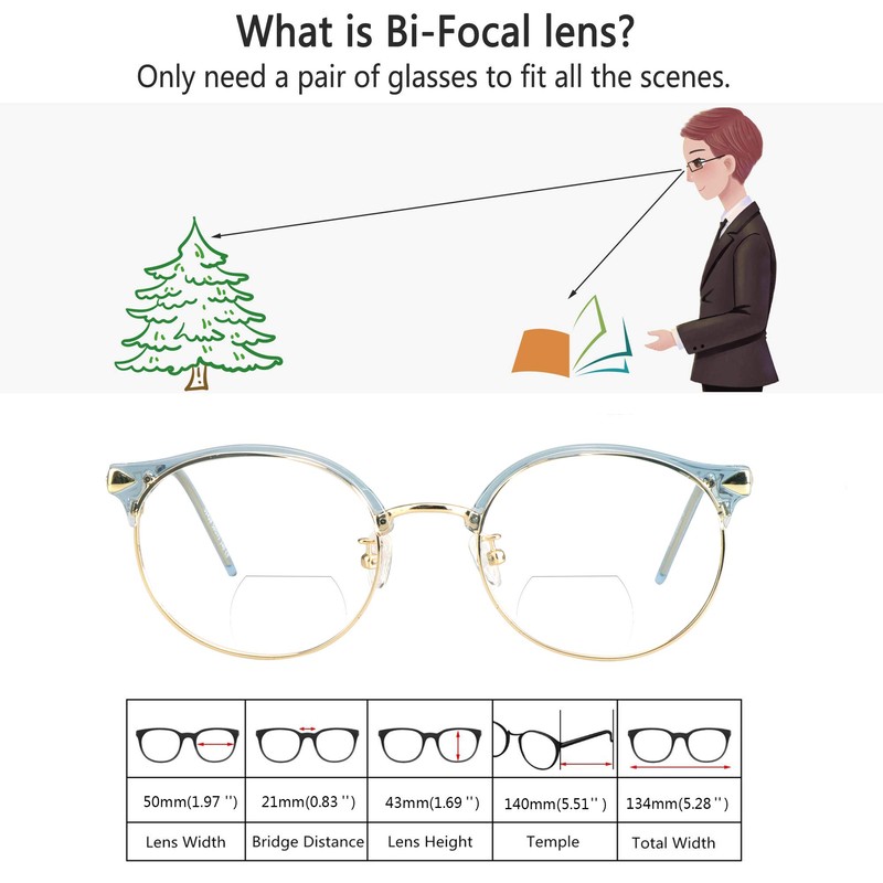 - 【BIFOCAL READING GLASSES】 - These lenses accommodate for both near and far vision by adding a unique lower lens with ADD vision value for reading and near vision.