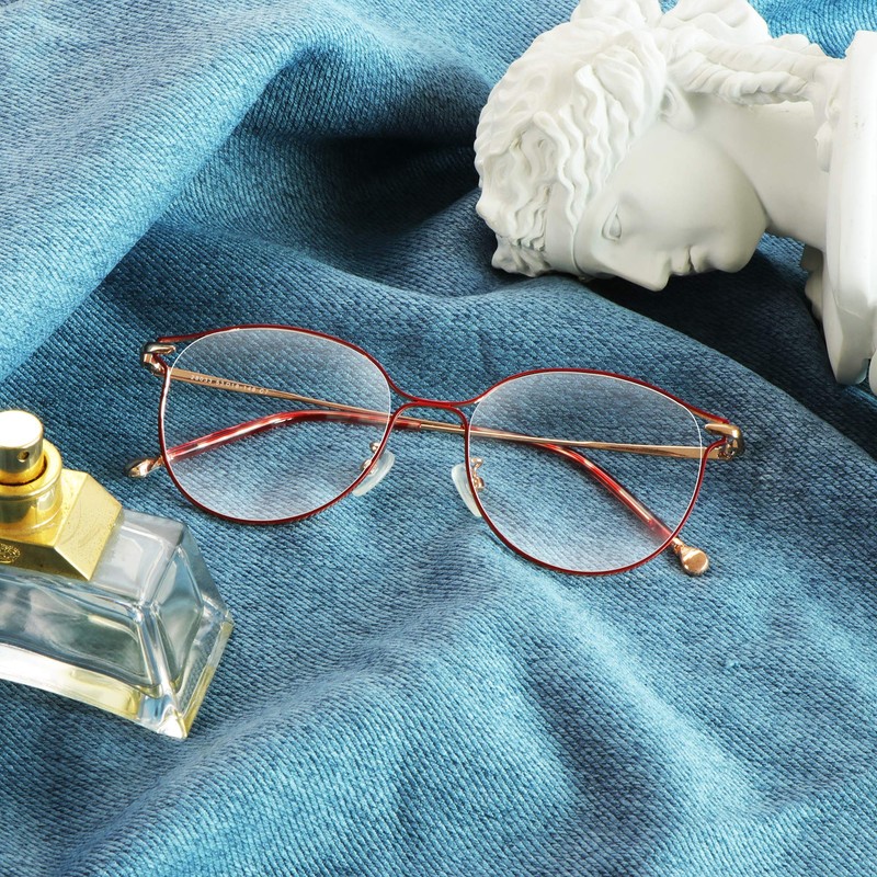 VisionGlobal Blue Light Blocking Glasses for Women, Anti Eyestrain, Computer Reading, TV Glasses, Stylish Oval Frame, Anti Glare (Gold Red, 3.00 Magnification)