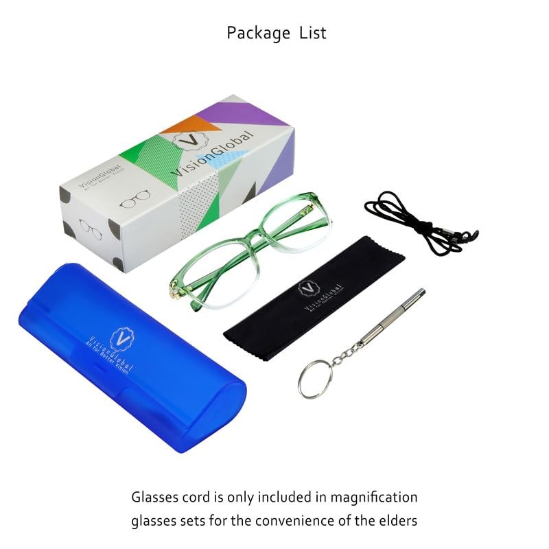 VisionGlobal Blue Light Blocking Glasses for Women, Anti Eyestrain, Computer Reading, TV Glasses, Stylish Square Frame, Anti Glare(Clear Green,+3.50 Magnification)