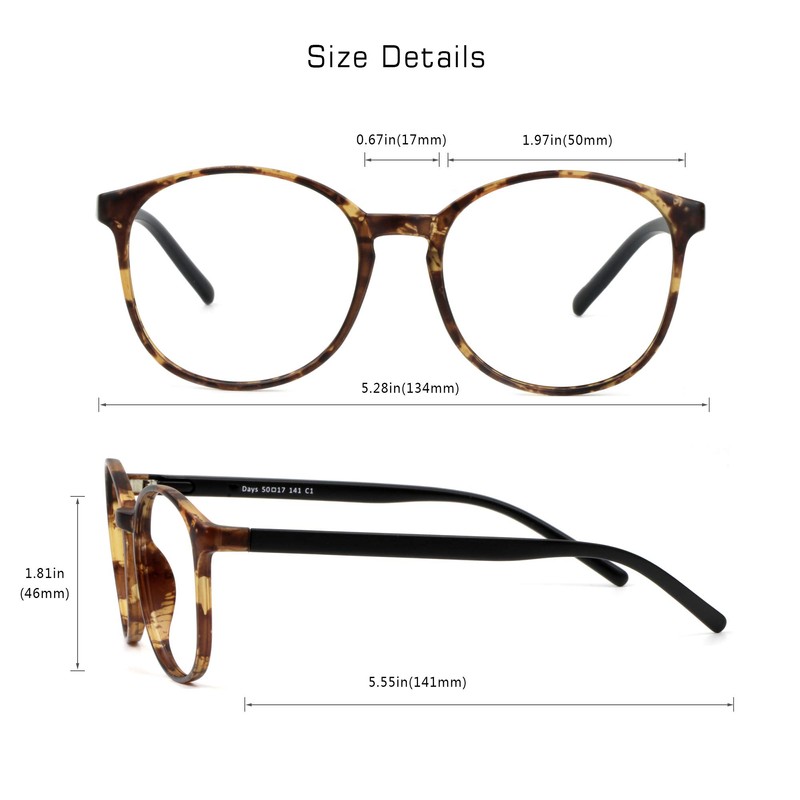 - Material:10g, ultra lightweight, frame TR90, no pressure on ears for long time wearing. Lens Resin. Oval shaped frames with a tortoise pattern, crafted from lightweight yet durable TR90