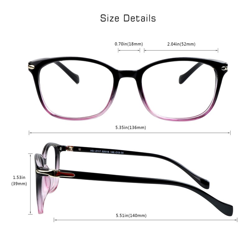 - Material:11g, ultra lightweight, frame TR90, no pressure on ears for long time wearing. Lens Resin. Square shaped frames with a black purple pattern, crafted from lightweight yet durable TR90