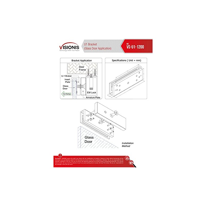 • (1) Visionis U1-1200 bracket for 1200lbs magnetic door lock