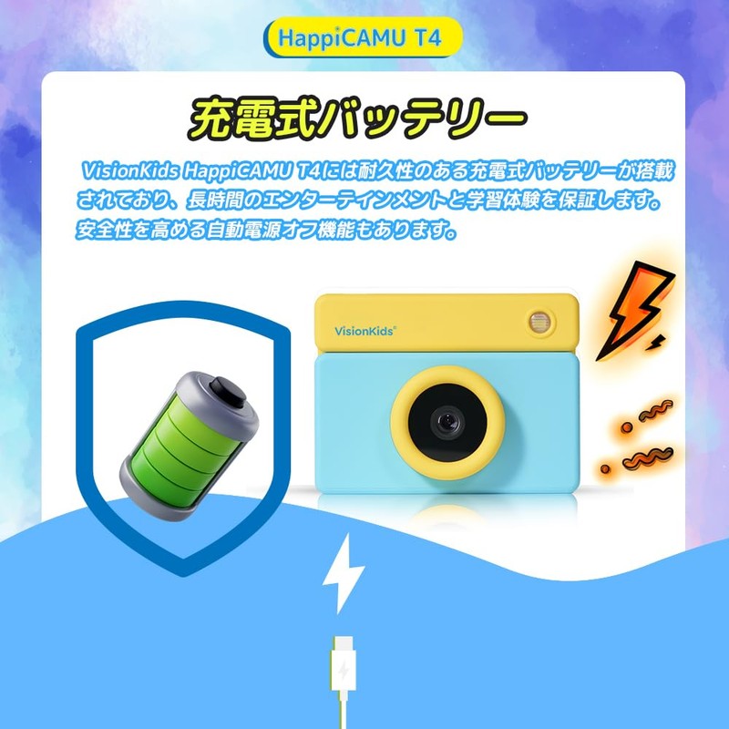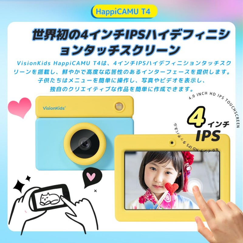 VisionKids HappiCAMU T4 Blue Toy Camera, 49 Megapixels, Video, 4 in IPS Touchscreen, Kids Camera, Selfie, Wifi, Japanese Instruction Manual, Present, Blue
