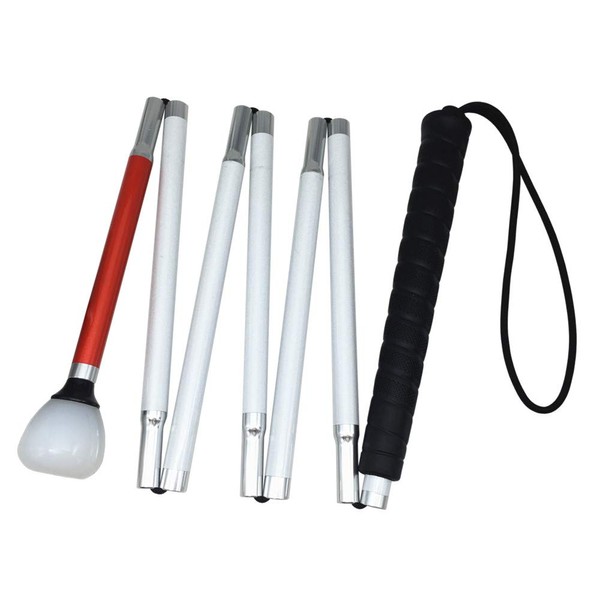 The folding long stick is made of high-quality aluminium. Its slim rubber handle and sits very comfortably in the hand.
