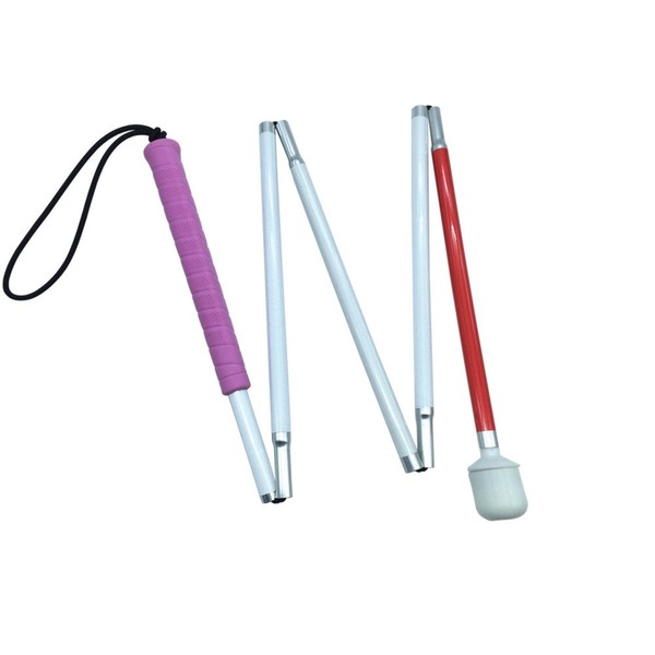 This Aluminum white cane is durable and flexible, it is lightweight and come with a large diameter tip made of long life super tough polymer and it has a firm rubber grip handle.New joint design provides superior tactile transmission. Canes fold and unfold with ease.* Rolling tip, folds down 5 sections.* Double elastic cord assembly for added security* Hook style tip- with the security of the tip held in place with the elastic cord.* White and red reflective for nighttime visibility.* Length: 105cm