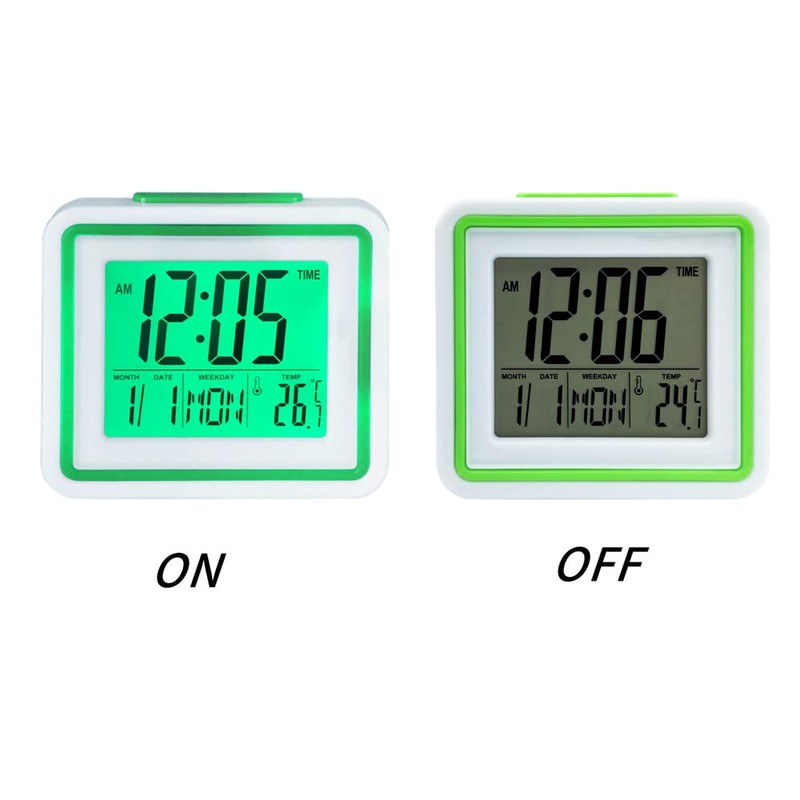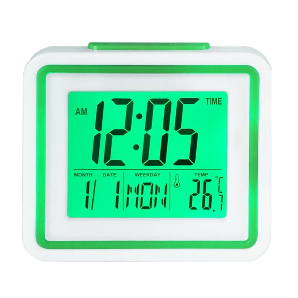 - [Display] - The clear LCD display shows time/date/temperature/week, and a green backlight may be activated for convenient nighttime viewing.