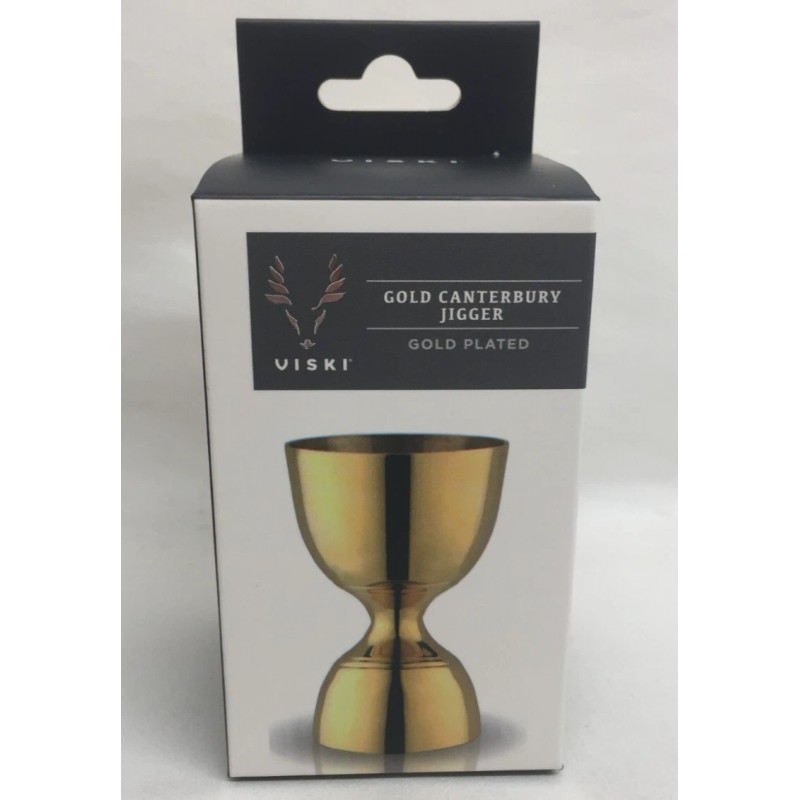 Viski NEW ~ VISKI GOLD PLATED CANTERBURY HEAVY SOLID COCKTAIL BAR * JIGGER * 1 & 2 oz