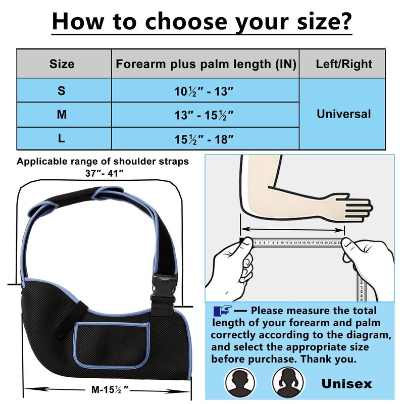 - Easy to wear and adjustThis shoulder anti-theft sling can be worn with one hand,the arm is placed in the hand pocket,and the shoulder strap buckle is fixed,it is very fast and easy to adjust the shoulder strap Velcro to the appropriate position.It provides perfect immobilization and protection for injury care,including shoulder muscle and tendon pain,shoulder instability,dislocations,sprains,contusions,rotator cuff surgery,acromioclavicular joint injuries,and more.Apply to left and right arms.