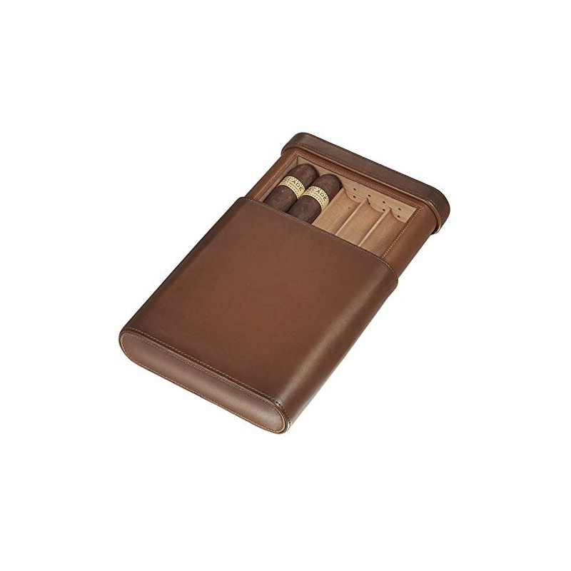This Luxurious Travel Cigar Case is crafted from fine leather and fragrant cedar wood, perfect for maintaining your favorite cigar's humidity and protect from any unnecessary wear and tear. The Larsen is designed to hold up to five cigars individually between wooden spacers, keeping them secure and in place for your travels