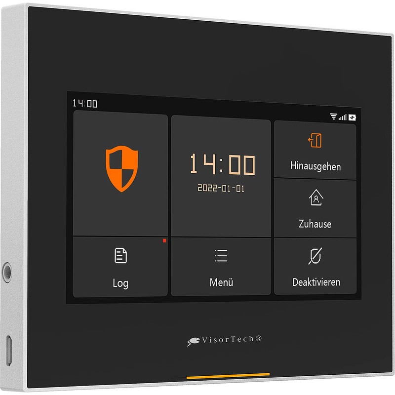 • Mobile phone network connection via micro SIM card*, quadband GSM 850/900/1800/1900 MHz. Large touch IPS colour display (10.9 cm / 4.3 inch diagonal): comfortable operation and control on the device. Convenient configuration via touch control panel and smartphone app. Compatible with Amazon Alexa: alarm system via Amazon Echo and Amazon Echo compatible compatible speakers per Switch voice command on and off Range: up to 40 m Transmission range: up to 150 m