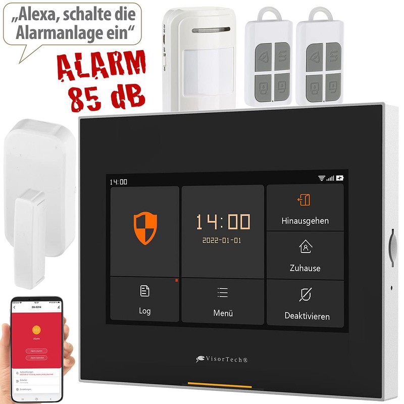 VisorTech Alarm: 5-Piece Wireless Alarm System: 2 Sensors, 2 Remote Controls, GSM, WLAN, App (House Alarm System, Complete Set, Alarm System, WiFi, Car Charger)