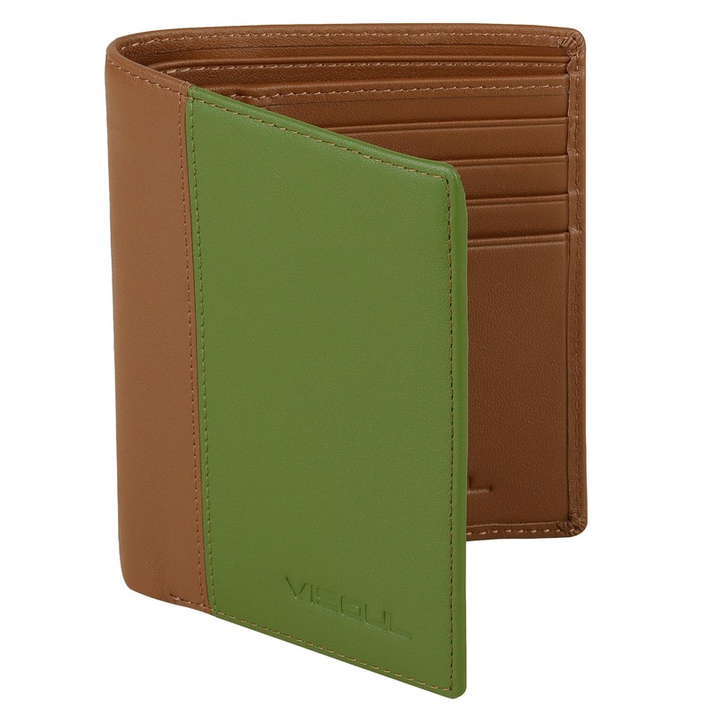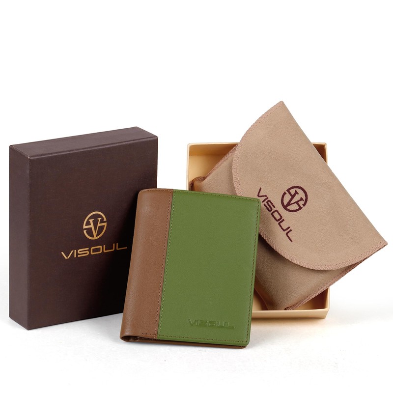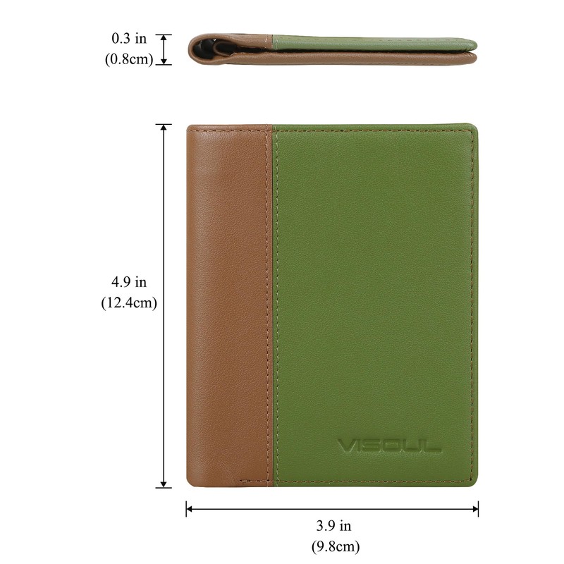 VISOUL Leather Billfold Wallet for Men and Women Two Tone, Bi-fold Wallet with RFID Blocking 11 Card Slots 2 Cash Compartments (Green and Dark Brown)