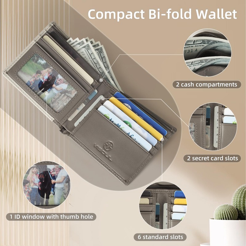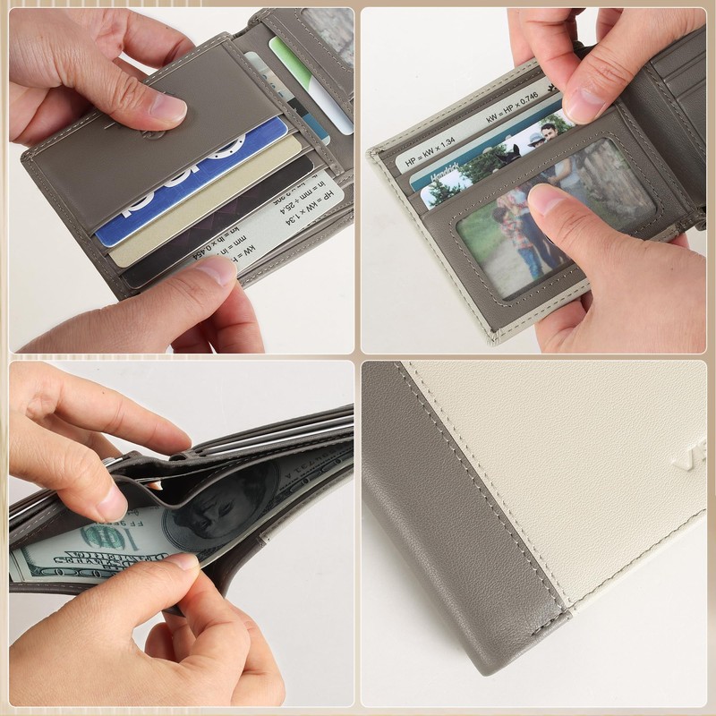 VISOUL Q07 Men's Genuine Leather Wallet with RFID Protection Large with Coin Compartment 8 Compartments Genuine Leather Wallet for Men Wallet Portmone, Light grey and dark grey, Casual