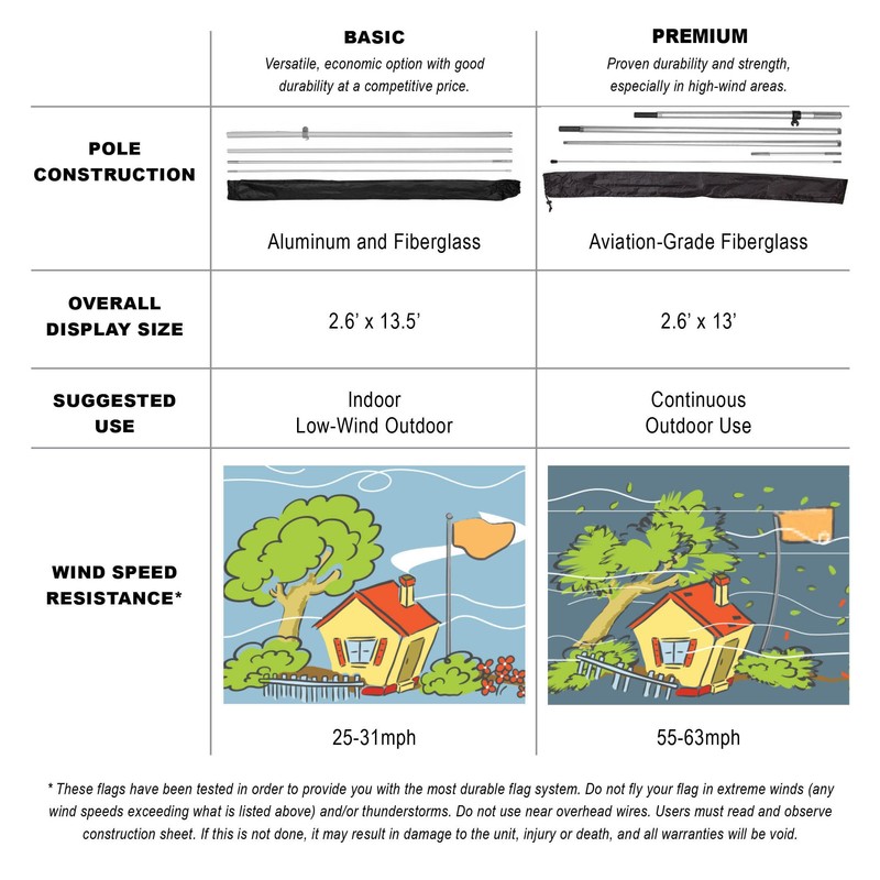 - TOOL-FREE ASSEMBLY: Flag kit includes flag, fiberglass and aluminum pole set, and base of choice between a galvanized steel ground stake or a cross base with weight bag that can be filled with sand or water (avoid using during freezing temperatures). With no tools required, you can have the feather flag stand assembled quickly, saving you time and energy.