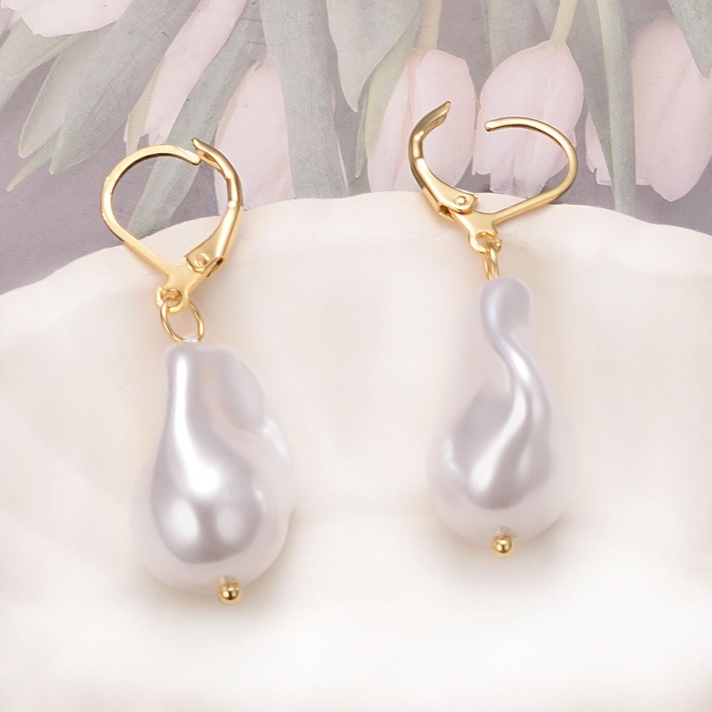 Vissen White Baroque Pearl Drop Earrings For Women Gold Plated Sleeper Hypoallergenic Earrings Jewellery
