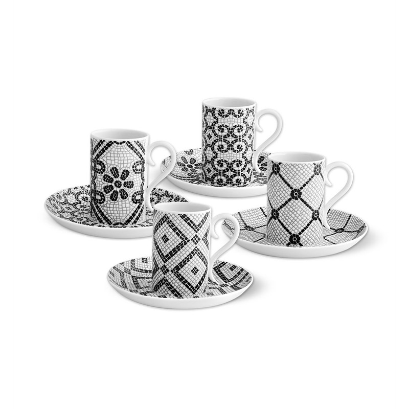 - VISTA ALEGRE - Calçada Portuguesa (Portuguese cobblestone pavement) (Ref # 21121367) Porcelain Set of 4 Espresso Coffee Cups & Saucers