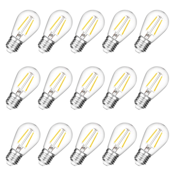 VISTERLITE Shatterproof S14 Replacement LED Light Bulbs, 2W, Equivalent to 11-25 Watt, Warm White 2200K, Outdoor String Lights Vintage Edison Bulb, E26 Medium Base, 15-Pack