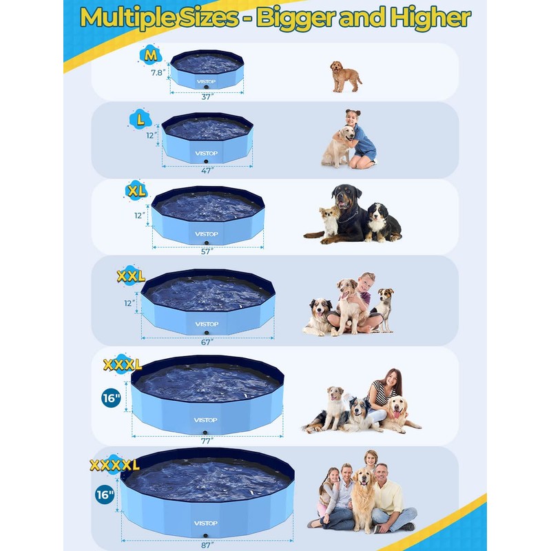 VISTOP VISTOP Extra Large Foldable Dog Pool XXL, Hard Plastic Shell Portable Swimming Pool for Dogs Cats and Kids Pet Puppy Bathing Tub Collapsible Kiddie Pool (67inch.D x 11.8inch.H, Blue)