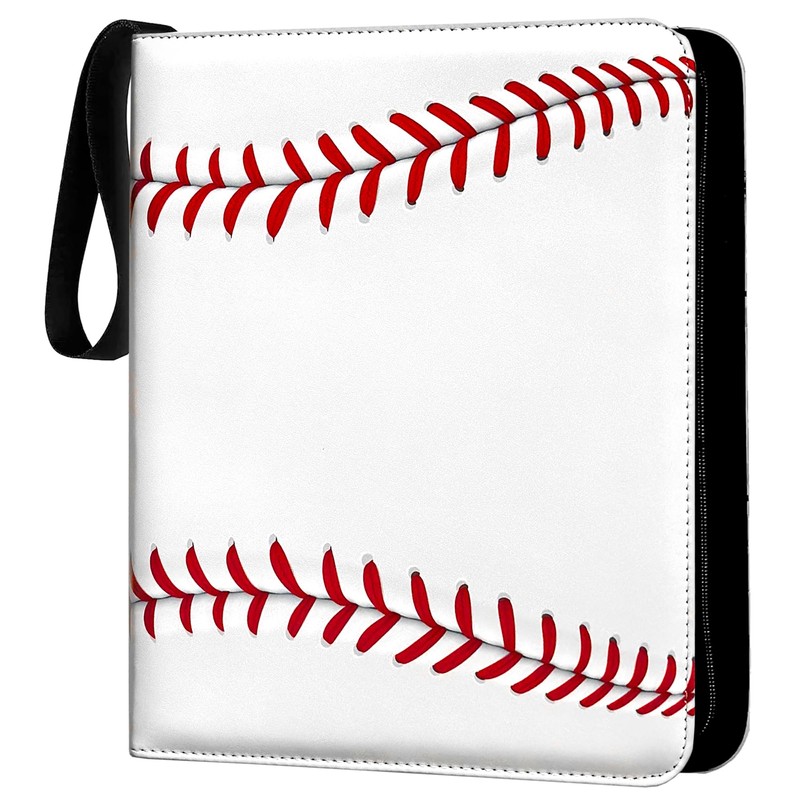 - [ PORTABLE AND DURABLE ]: With our baseball cards binder, effortlessly carry your collection with the convenient extra wristband. Versatile card holder binder, it adapts to your needs with a customizable number of sleeves. Protect your cards from fading and stains, preserving their value and beauty for years. Baseball cards binder unique design has depth illusion. Dimensions 13.2"L x 10.6"W x 2"H.