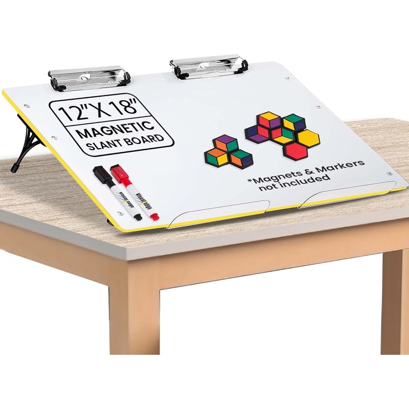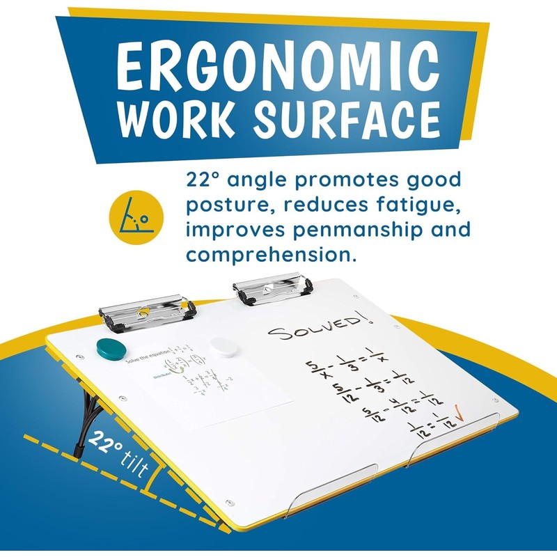 Visual Edge - Slant Board for Writing - Adjustable, Portable Workstation with Magnetic Whiteboard & 22° Angle for Optimal Writing & Reading - Ergonomic Desk for Teachers & Students - Yellow