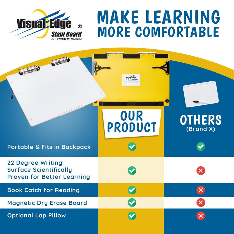 - ERGONOMIC DESIGN FOR OPTIMAL POSTURE: The Visual Edge slant board writing surface features a scientifically engineered 22-degree angle to promote good posture, reduce neck and back fatigue, and ensure an optimal visual distance, enhancing work performance and comfort for professionals.
