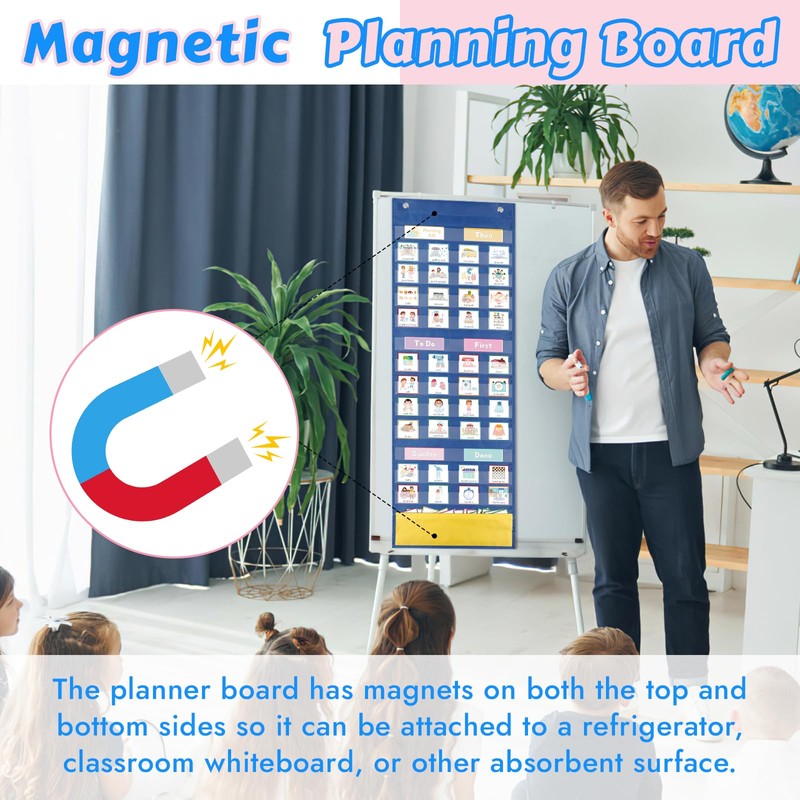 - ❤️【Magnetic Design】 Our Magnetic Visual Timetable for Kids brings a fresh twist to learning and discipline. With 2 stripes magnetic one the back, it sticks firmly to any metallic surface, like refrigerators or whiteboards, ensuring easy placement and rearrangement without damaging walls.