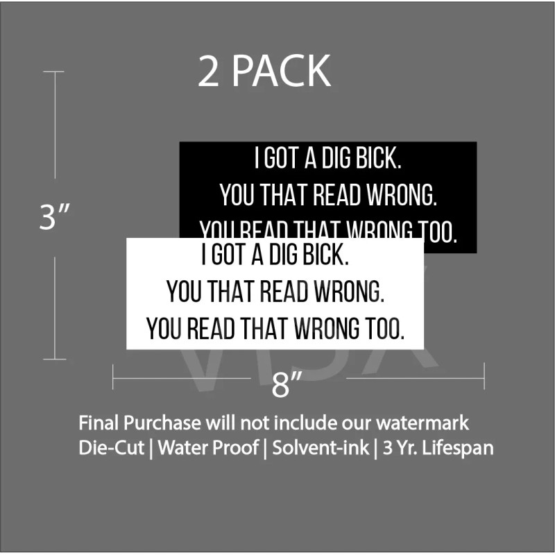 VISX I got a dig bick Bumper Sticker Prank Joke tailgater big read that wrong 2 PACK