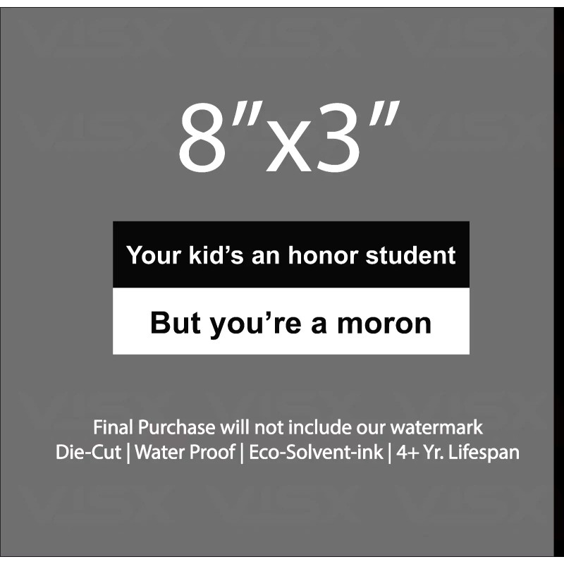 VISX Your kid's an honor student but you're an idiot Bumper Sticker funny Prank