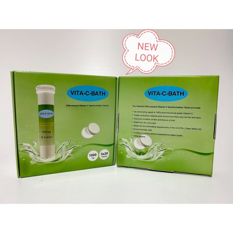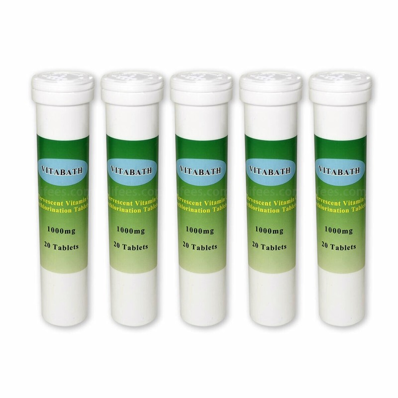 VTABATH Bath Filter / water filter/ 100% organic VC Water/ Effervescent Vitamin C Dechlorination, 1000 mg, 100 Tablets - Swimming Pool Chlorine