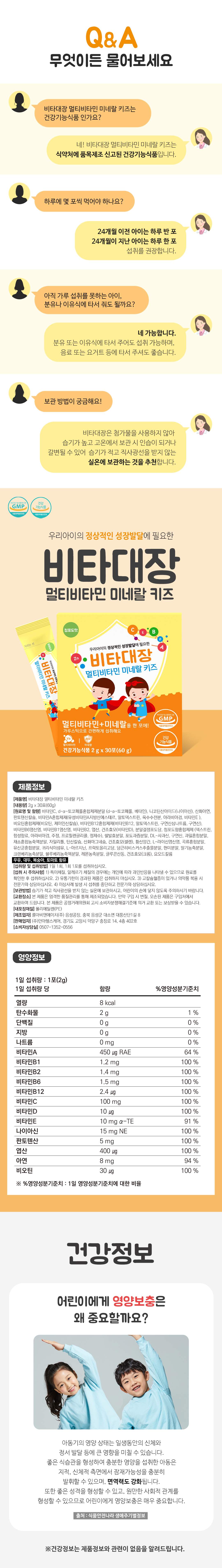Vita Captain Multivitamin Mineral Kids 2g x 30 packets Children's Multivitamin Infant Nutrition / 비타대장 멀티비타민 미네랄 키즈 2g x 30포 어린이 종합비타민 유아 영양제