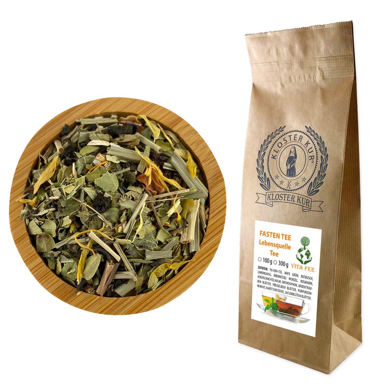 - Contents: fasting tea with PU ERH tea, mate green, red bush, lemongrass, nettle root, rosemary, field horsetail, orthosiphon, bearberry leaves, cranberry leaves, purple coneflower, carrot pieces, safflower flower leaves. No additives. Bottled in the Netherlands.