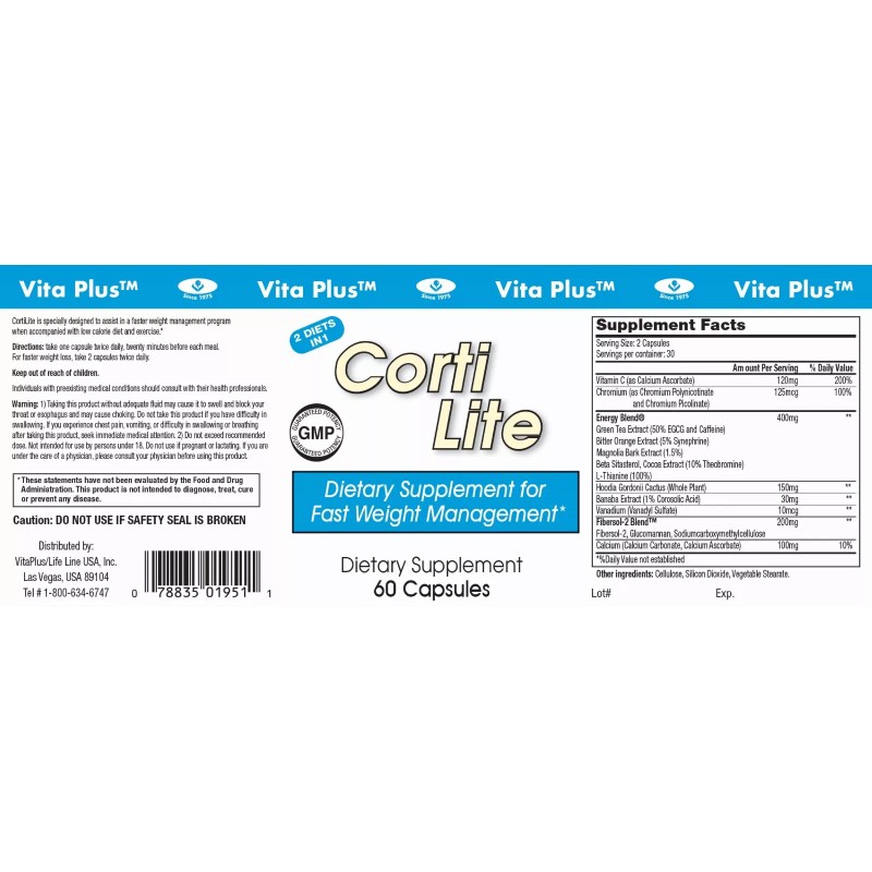 - Vita Plus Corti Lite- 60 Capsules per Bottle.