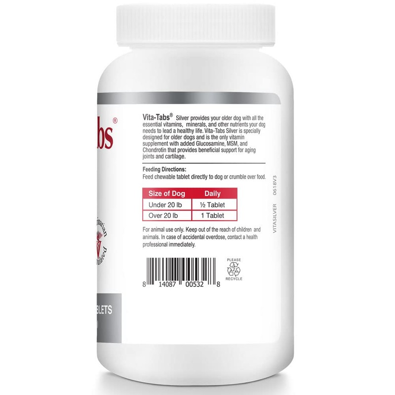 Vita-Tabs Silver for Senior Dogs - Daily Vitamin-Mineral Supplement, Supports Immune System, Bones, Veterinarian Approved, Liver Flavor, 150 Chew Tabs